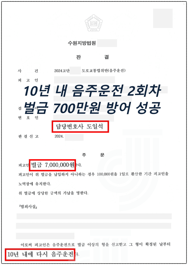 [형사/성공사례] 음주운전 2회차 벌금방어 성공 수원형사변호사