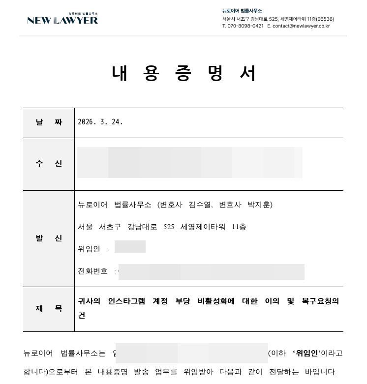 문제는 많은 분들이 그 단계에서 포기한다는 것입니다. "어쩔 수 없는 일인가 보다" 하고 넘어가버립니다. 하지만 그 계정이 오랜 시간 쌓아온 브랜드이고 수익의 통로라면, 감정적인 항의가 아니라 사실관계와 절차, 손해 발생 구조를 정확히 짚어 법률적으로 설득하는 대응이 필요합니다. 저희가 수많은 계정복구 사건을 통해 직접 확인해온 사실입니다. 그리고 이번 사례 역시 그 경험이 쌓여 만들어낸 결과였습니다.