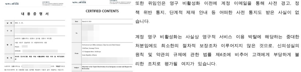 저희가 직접 제출한 인스타그램 내용증명 중 일부
