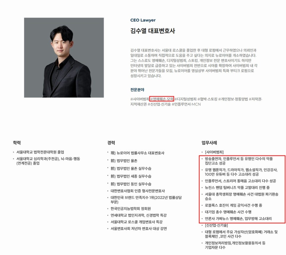 뉴로이어 법률사무소 김수열 대표변호사입니다.