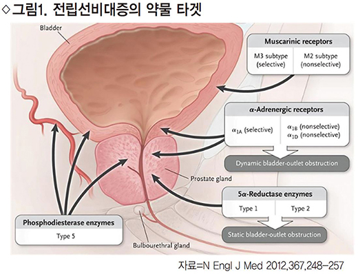 알파차단제 + 무스카린 길항제(또는 베타-3 작용제) 병합은 배뇨 증상과 저장 증상이 모두 있는 환자에게 사용할 수 있습니다.