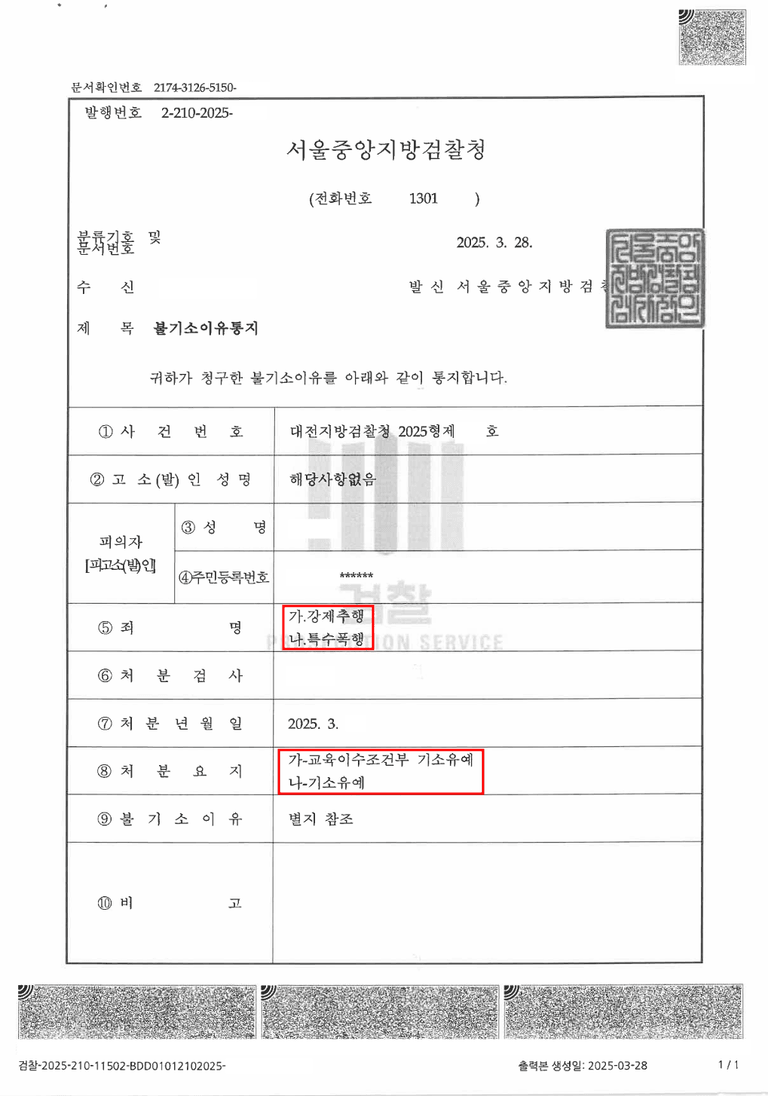 수사기관은 변호인의 주장을 받아들여, 기소유예 처분을 내렸습니다.