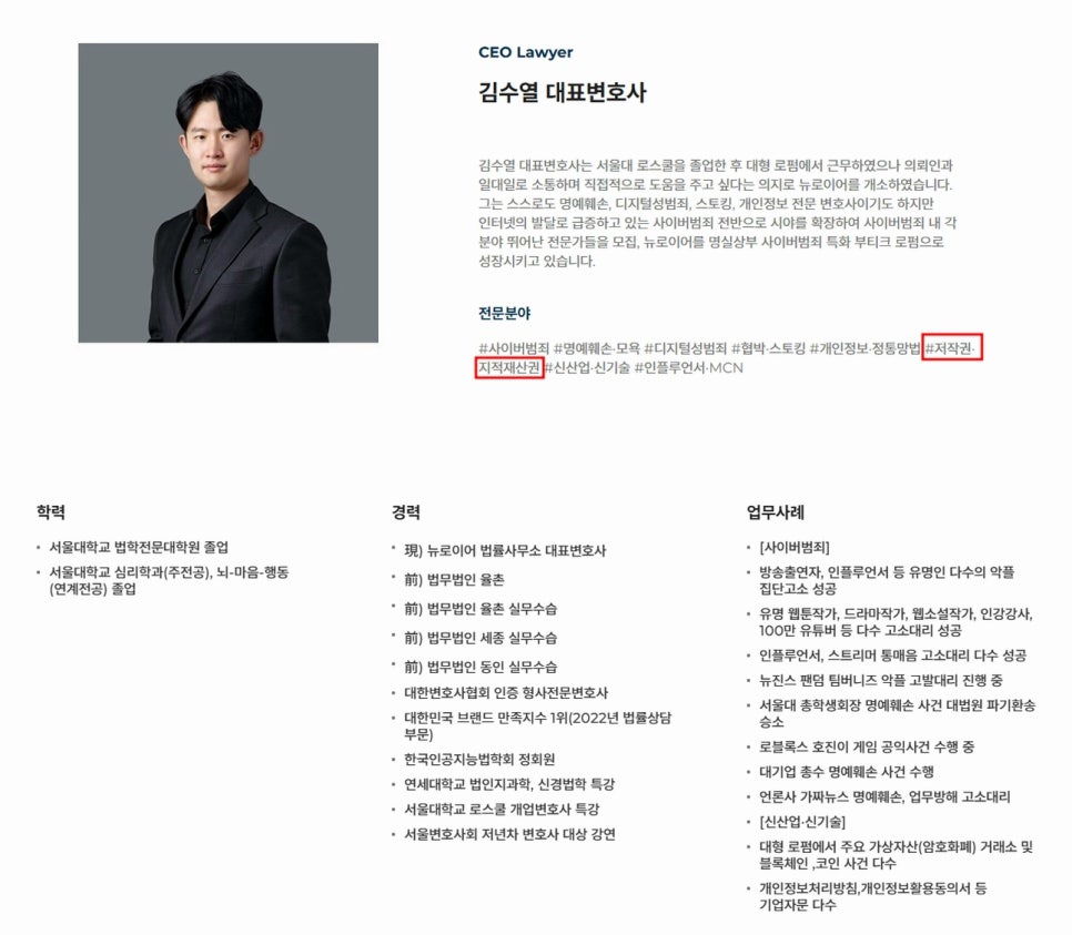 뉴로이어 법률사무소 김수열 대표변호사입니다.