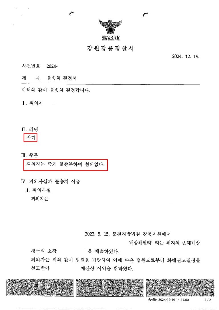 수사기관은 변호인의 주장을 받아들여, 무혐의 결정을 내렸습니다.