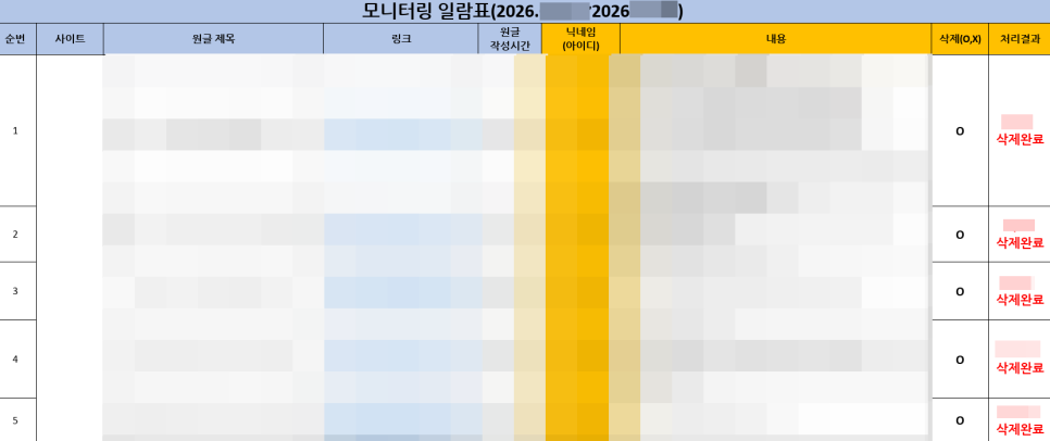 최근 들어 이러한 선제적 대응의 실효성이 알려지면서 일반인 유저분들로부터도 조용히 관련 문의가 지속적으로 이어지고 있는 상황이기에 오늘은 이 전담 시스템을 활용하여 디시인사이드 커뮤니티 내에 유포되던 악의적인 욕설 및 허위사실 관련 게시글을 40건 이상 신속하게 삭제 조치한 실제 업무 사례를 차분하게 소개해 드리려 합니다