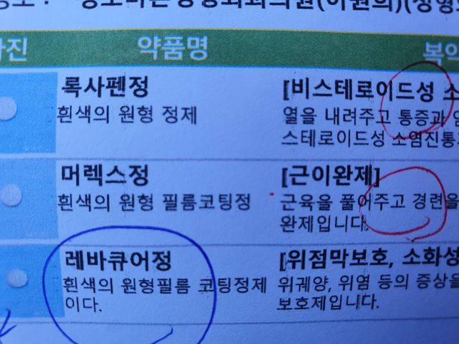 - 약 복용약·영양제Q. 저 방금 전에 22일에 받아온 약을 먹었는데요저 방금 전에그저께 내과에서 받아온 이 약들을 먹었는데요 이따가 저녁 먹고 오늘 정형외과에서 받아온이 약들만 먹어야 되나요? 아니면그저께 내과에서 받아온 이 약들하고오늘 정형외과에서 받아온 이 약들을 같이 먹어야 되나요? 근데 레바큐어정이 포함된 내과약들을 방금 전에 먹었는데 이따가 저녁 먹고 나서 레바큐어정이 포함된 정형외과약들만 먹어도 되나요?