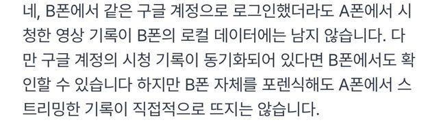 - 전기·전자학문Q. 다른 공기계로 시청한 영상도 나오나요?예를 들어 A폰에서 구글 사이트에서 영상을 시청하고 난 다음 B폰에 같은 구글 아이디로 로그인 했을 때 A폰에서 검색한 검색기록은 나오겠지만 사이트 들어가서 봤던 영상은 B폰 포렌식 했을 때 B폰으로는 본 적이 없기 때문에 A폰에서 본 영상 스트리밍 기록은 뜨지않나요?