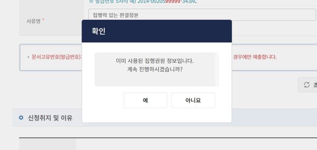 - 민사법률Q. 채권압류 및 츄심 신청 후 재산명시 신청안녕하세요어제 채권압류 및 추심명령 신청을 했고 오늘 재산명시 신청을 하려고 하는데요, 첨부한 사진처럼 "이미 사용된 집행권원 정보입니다" 라고 나왔어요. 일단 계속 진행이되서 접수를 했는데 괜찮은 건지 궁금합니다 ㅜㅠ미리 답변에 감사드립니다.