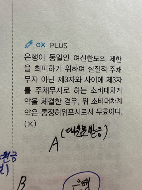 - 민사법률Q. 민법 통정허위표시 문제 질문드립니다제가 이해한 바로는, A가 대출을 못받으니B를 제3자로 내세워서 대출을 받는 상황에서1. 은행이 이를 알고 실제로 제3자인 B에게 채무를 부담시키지 않을 의도로 대출을 해준다면 이는 통정허위표시에 해당2. A가 법적인 책임(채무)를 B에게 부담시키지 않는다는 등 은행과의 적극적인 통정행위 없이, B가자신의 명의로 대출을 한 경우에는 B가 법적인 책임을 부담하지 않는다는 비진의표시로 볼 수 없어서B가 대출을 상환할 책임을 지니고 통정허위표시에 해당하지 않아 유효하다아래의 문제에서는 은행이 대출제한을 회피하기 위하여 B와 대출계약을 체결한 경우로 2번 사례에 해당해서 통정허위표시로 볼 수 있지 않나요?왜 정답은 X인지 모르겠습니다ㅜㅜ