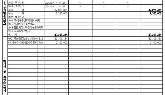 - 연말정산세금·세무Q. 위하고티 근로소득원천징수영수증 연구보조비 표기 될 수 있도록 수정하는 방법위하고티에서 원천징수영수증 발급을 했는데 식대는 표기가 되어있지만, 연구보조비는 표기가 안되어 있습니다.연구보조비까지 표기될 수 있도록 반영하여 수정하는 방법을 알려주세요연구보조비는 1월,2월분 총 400,000원만 부여하였습니다.