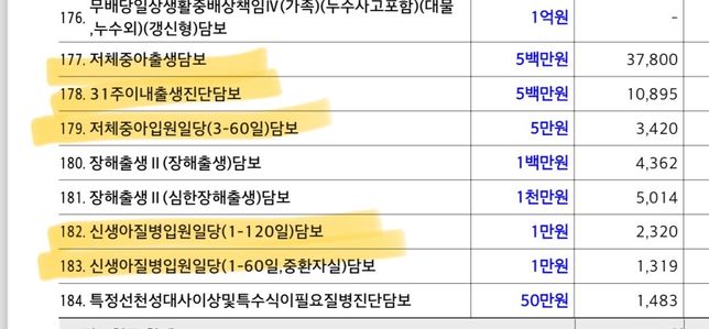- 의료 보험보험Q. 태아보험특약 신생아관련특약 필수인가요?실속있게가입원하는데 노란색밑줄친 항목들이 꼭필요한항목인지 궁금합니다 실손가입했습니다금액도 비싸고 31주이내 출생경우도 흔한건지 ㅠㅠ어렵네요