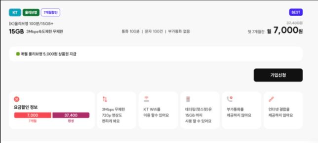 - 스마트폰·태블릿디지털·가전제품Q. 알뜰요금제 신청에 대해서 질문이 있습니다.안녕하세요 원래 KT를 사용하다가 이번에 알뜰요금제를 사용할려고 합니다. 아이즈모바일에서 요금제 신청을 할려고 하는데 처음이다보니 뭔가 잘못되는거 아닌지 하는 불안감에 막상 신청을 하지 못하고 있습니다.첨부한 이미지의 요금제를 신청하려고 하는데 괜찮은 요금제인가요? 그리고 저기서 그냥 가입신청을 해서 차례대로 하면 되는건지 궁금합니다. 마지막으로 7개월간 7천원이라고 되어있는데 이 요금제를 하면 통화나, 문자를 오래 쓰지 않는 이상 추가 요금없이 월 7천원이 나가는게 맞는건지 궁금합니다.