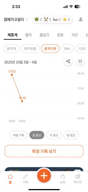 - 기타 고민상담고민상담Q. 체지방량,골격근량이 이렇게 하루아침에 바뀌나요?앳플리라는 야매 인바디체중계를 사서 어제,오늘 사용했는데 사진처럼 저정도로 골격근량,체지방량이 바뀌나요.? 체지방량늘고 근육량갑자기 감소한거 보고 속상하네요ㅠ