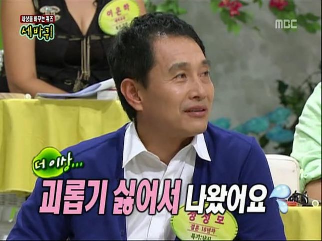 - 연애·결혼고민상담Q. 캡쳐한 사진에 대해 좀 궁금한 게 있어요.밑에 캡처한 사진은 2009년 방송된 mbc예능프로 세바퀴의 한 장면이고 당시 드라마 선덕여왕에 출연했던 정성모배우인데 이 때 결혼 16년차라고 하면 실제로 몇 년도에 결혼하신 건지 궁금한데 정확한 답변 주시면 좋겠습니다.