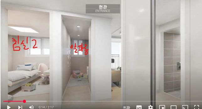 - 인테리어생활Q. 알파룸을 두어야할지, 침실과 합쳐야할지 고견 여쭙고 싶습니다안녕하세요 :)다름이 아니라, 제가 식견이 부족하여 실례무릅쓰고 한가지 여쭙고 싶어서 글을 남기게 되었습니다우선 분양당첨된 평형은 51타입 (22평입니다)아래 평면도에서 보면 알파룸이 쪼그만한게 있는데 가로로는 130cm 정도되는거같고 세로가 250cm정도인데 이걸 그대로 알파룸으로 가져가도 되고, 무상옵션으로 침실 2와 통합하는 것도 선택이 가능한 것 같습니다. 저는 실거주보다는 향후 매매차익에 초점을 맞춰서 조금 고민을 하고 있는데, 전체적인 평면에서 보면 창고로 쓸만한 부분이 없어서 알파룸을 창고로 짜서 활용하면 어떨까 하는 마음이 드는데 또 한편으로는 저 알파룸이 너무 작아서 사실 침실2와 통합을 하는게 나중에 매매시에도 훨 유리할까 싶기도하고...!아마 51의 수요층은 1인,2인,3인(작은아이정도둔집) 일거라고 보는데 혹시 보시기에는 어떤 선택이 추후 매매시에 조금 더 가격에 좋은 영향을 줄 수 있을지 고견 한번 여쭙고 싶었습니다!@ 실제 모델하우스 가상현실 사진도 캡처하였습니다! 침실2와 알파룸 각각이 보입니다!