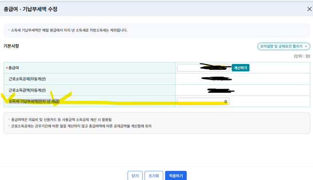 - 연말정산세금·세무Q. 국세청 홈텍스 연말정산모의계산을 미리해봣는데 소득세 기납부세액 먼저낸 세금이 24년도 매달 급여에서 나가는 소득세,지방세포함해서 말하는건가요?국세청 홈텍스 연말정산모의계산을 미리해봣는데 소득세 기납부세액 먼저 낸 세금이 24년도 매달 급여에서 나가는 소득세+지방세포함해서 말하는건가요?