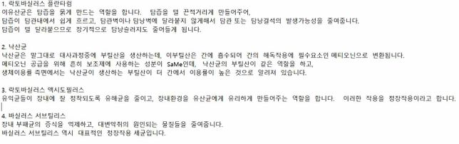 - 내과의료상담Q. 락토바실러스 플란타럼이 담낭 슬러지를 없애주는 역할을 하나요?락토바실러스 플란타럼이 담낭 슬러지를 없애주는 역할을 하나요?아래와 같은 설명이 되있는 어떤 제품이 있는데과연 담낭슬러지 제거에 도움이 되는지 궁금합니다https://media.a-ha.io/aha-qna/posts/vI-rmkHq4MhFIBUiRuSf7링크나 아래사진을 크게하면 설명을 볼수있습니다이미지가 포함된 질문이에요.