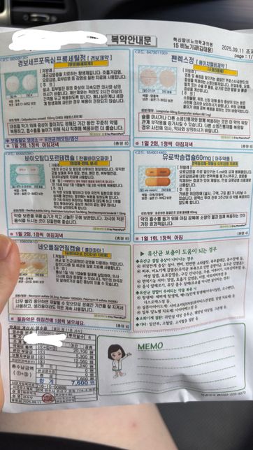- 약 복용약·영양제Q. 항생제와 피임약 복용이 가능한지 알려주세요!제가 급성 방광염에 걸려서 병원에 가서 진료를 받고 항생제 주사도 맞고 약을 타왔습니다. 제가 걱정이 되는 것은 제가 피임약 머시론을 피임목적으로 1년째 복용 중인데 첫번째 사진에 나와있는 약들을 먹어도 피임효과에 괜찮을지 걱정이 됩니다.또한 두번째 사진에 빨간 글씨로 되어있는 항생제 주사도 맞았는데 이것또한 피임효과에 지장을 줄까요?약은 4일치를 타왔는데 마지막 약을 다 먹은 후 일주일동안 이중피임을 해야할까요?항생제와 약들이 피임효과를 낮추진 않을지 걱정이 됩니다.또한 이 약을 먹고 피임약을 먹을 때 시간차를 둬야 하나요?