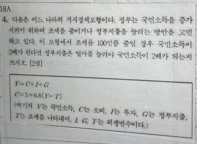 - 경제정책경제Q. 감세승수, 정부지출승수 급하게 질문드려요ㅠㅠ안녕하세요첨부한 사진의 문제를 아래와 같은 가장 간단한 승수 공식으로 문제를 풀 수 있는 이유가 무엇인가요?*감세승수: mpc/1-mpc*정부지출승수: 1/1-mpc가장 긴 승수의 식을 보면 한계소비성향 뿐만 아니라 비례세율, 유발투자계수, 한계수입성향도 고려하잖아요..!이 문제는 폐쇄경제를 가정하고 있기 때문에 한계수입성향이 0이 된다는것은 알겠는데, 비례세율과 유발투자계수도 고려하지 않아도 되는 이유는 무엇인가요?문제 조건에 I와 T가 외생변수라는건 상수라는 뜻이어서인가요??추가적으로 여쭤보고 싶은 것이 있습니다ㅠㅠ케인즈는 이자율이 animal spirit에 의해 결정된다고 보면서 독립투자를 가정한 걸로 알고있습니다.그렇다면 사진의 문제와 같이 승수를 구하는 문제에서 유발투자를 고려하게 하는건 케인즈의 시각를 고려한 것은 아니고 그냥 일반적인 차원에서 묻는 것일까요?감사합니다