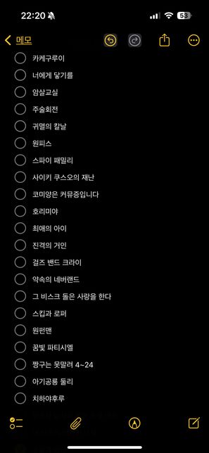 - 생활꿀팁생활Q. 넷플, 티빙 재밌는 애니 추천해주세요24년 12월 말쯤?부터 하이큐로 시작해서 새벽에 나히아 극장판까지 다 본 상태이고 체크 안 되어있는 것들은 천천히 볼 예정입니다. 지금은 방금 전에 보기 시작해서 주술회전 3화 보고 있습니다. 여기 있는 거 말고도 재밌는 애니 있으면 추천해주세요. 웬만하면 넷플이랑 티빙에 있는 애니로 부탁드립니다. 작화 중요시하게 봐요… OST도 좋은 거 있음 추천 부탁드립니당.. 나히아 오프닝은 다 좋아하구요 제 취향 제이팝 플리입니다 비슷한 노래 또는 ost 추천 부탁드릴게요..🙈🙏