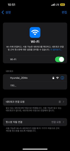 - 자동차생활Q. 현대 디 올뉴 코나sx2 자동차 와이파이차 시동을 걸고 휴대폰 와이파이를 키면 사진처럼 hyundai_2EMo라고 뜨는데 이거 혹시 사용 가능한 와이파이인가요? 사용 가능하다면 비밀번호는 어떻게 아나요?