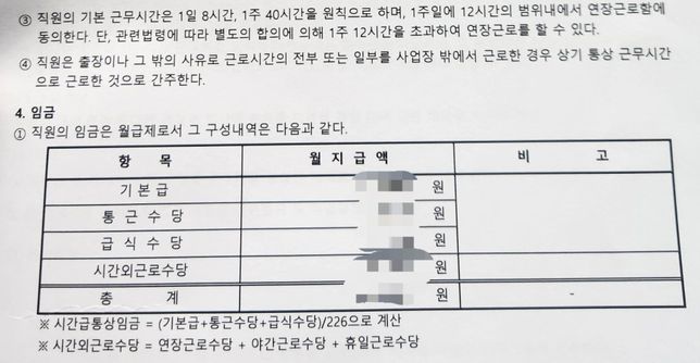 - 임금·급여고용·노동Q. 합격통보 후 시간외수당 포함으로 근로계약서 썼습니다.안녕하세요.시간외수당에 대해 여쭤볼 것이 있습니다.전화로 합격통보 받을 때 연봉이 얼마다. 이렇게 연락받았고 생각보다 적어서 여쭤보니 시간외 수당은 따로에요 해서 출근했습니다.근로계약서를 집에와서 다시보니 시간외수당이라고 야간근로+연장근로 다 포함해서 시간외수당이라는 항목이 급여목록에 포함되어 있더라고요.제대로 확인 안한 제 문제도 있지만 이럴경우 사기아닌지.. 그런데 전화외엔 시간외수당 따로라고 한 증거가 없네요..계약취소 가능할까요?