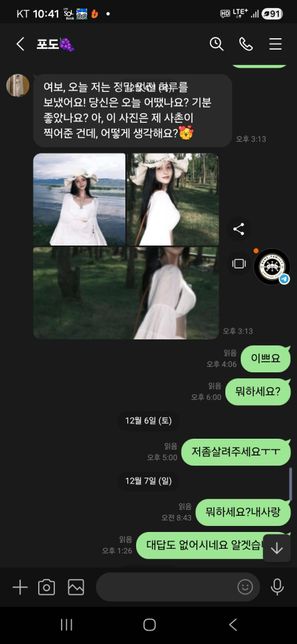 - 연애·결혼고민상담Q. 여자들 감정이 궁금하네요 심히 정말로대충 이런대 이사람 마음이 어떤지 궁금해지네요 사랑해요 그럼서 사진 만 보내놓고 대화가안되요 글을읽고 답장도 안하고 이젠보지도 안네요 ㅜ