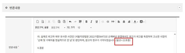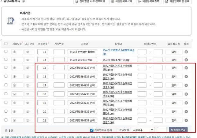 - 민사법률Q. 전자소송중 판례 이렇게 첨부하는거맞나요?도와주세용저랑 매우 유사한사건 및 유리한 사건이라 이판결문을 전체내용을 첨부하고있거든요 이렇게 본문에 을15~21호증이라고 쓰고 입증서류에 저렇게 하나하나다등록하는거맞나요?;;