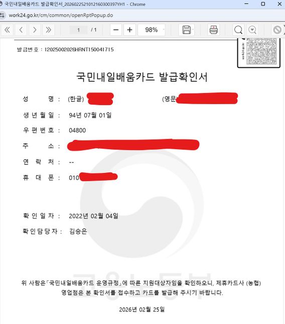 - 기타 고민상담고민상담Q. 혹시 이건 이미 발급된 건가요? 내일배움카드인데요제가 22년도 5월에 취업하기 전에 발급했나봅니다근데 저거 제가 유효기간남은거같은데 수령해서 써도 되는건가요 ...???