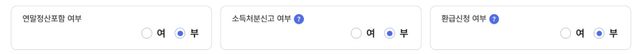 - 연말정산세금·세무Q. 이거 "부"로 해도 소득세 환급 받을 수 있나요?아래 글쓴이입니다.https://www.a-ha.io/questions/44adc19f64f450dd97afd1545be8fe00환급신청여부 "부"를 선택해도나중에 연말정산 시 소득세 환급 받을 수 있는 건가요?