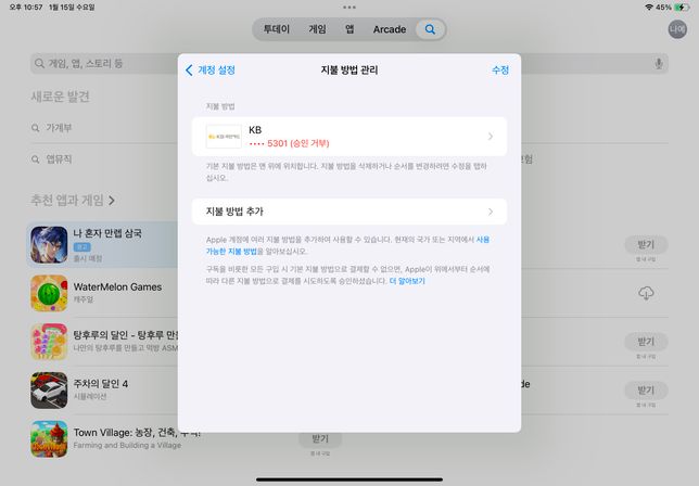 - 스마트폰·태블릿디지털·가전제품Q. 갑자기 결제가 안됩니다. 지금까지 잘 되다가 카드 재발급 해서 다시 지불 방법 등록해도 안돼요. 제대로 적었는데.. 카뱅 체크 카드에요갑자기 결제가 안됩니다. 지금까지 잘 되다가 카드 재발급 해서 다시 지불 방법 등록해도 안돼요. 제대로 적었는데.. 카뱅 체크 카드에요