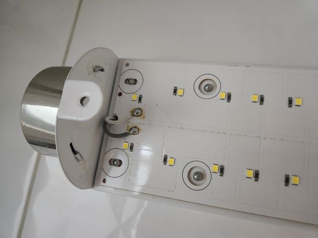 - 인테리어생활Q. 이런 화장실 조명 교체 어떻게 할까요?이런 화장실 조명 어떻게 교체할까요? 현재 화이트라 주황빛으로 바꾸고 싶어요. 겉 감싸고 있는 부분 떼어내보니 이렇게 생겼네요. 그냥 교체하려고 했는데, 오른쪽동그라미 두개로 아예 붙어 있는 거 같기도 해서요 ㅠ 교체 불가능인가요?
