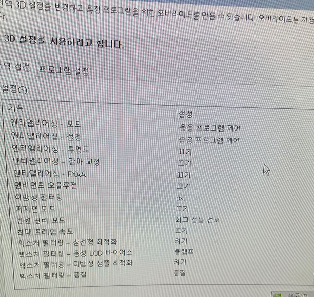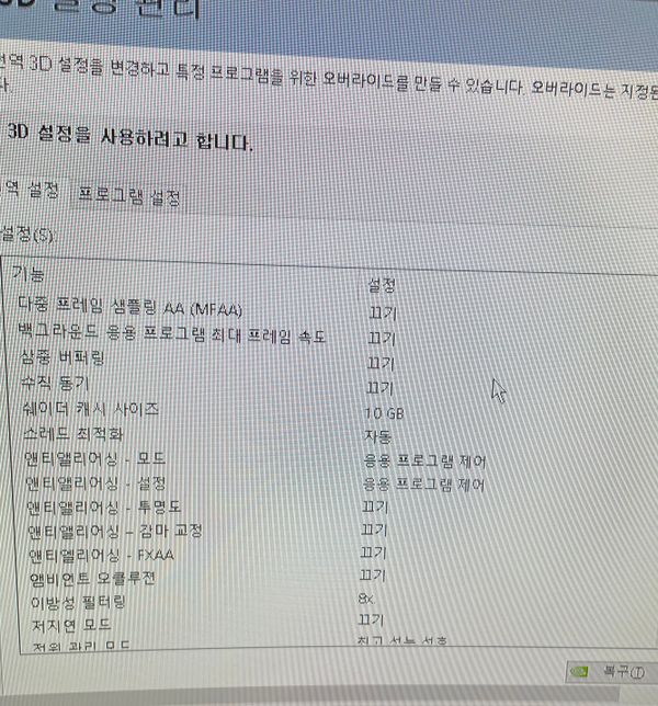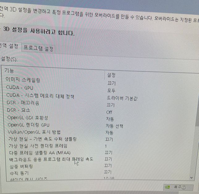 - PC·노트북디지털·가전제품Q. 콜오브듀티 블랙 옵스6 워존 엔비디아 3D 그래픽 설정 최적화 좀 도와 주새요 ㅠㅠ제가 바보인가 봅니다… ddu로 드라이버 밀고 원래 적용 해둿던 3D 제어판 설정을 저장 해두지도 않은채 초기화 시켜 최적화를 어떻게 해야 할지 모르겠네요… 사양은 gtx 1660 super i5-9400 6gb 램 16기가 1920x1080 60hz입니다…