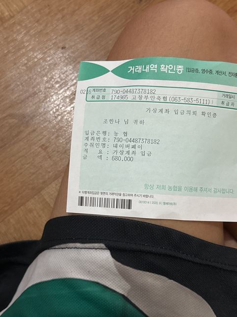 - 기타 고민상담고민상담Q. 네이버 페이에 기타 680,000원 입금을 했는데요 직원 통해서 종이 로요 근데요, 입금이 안 됐어요. 그래가지고 그 직원이 영수증을 보여서영수증을 보여서 찍어 달래요. 기타 구매한 거예요. 그래가지고 네이버 페이직원한테 이메일로 보냈어요. 근데 확인이 되려면 오 일이 걸린데요. 근데요 제가 따로 악기 담담 담담담자한테 전화를 했거든요. 담당자는 아직도 입금이 안 됐대요. 입금이 들어온 게 전혀 없대요. 무통장 종이로 입금 현금으로 하면 좀 시간이 걸릴 수도 있나요 완료라고 뜨면요. 아직도 결제 대기 중이라고 떠요.