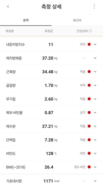 - 다이어트 식단건강관리Q. 기초대사량 관련 다이어트 및 식단 질문안녕하세요. 20대 후반 여성으로, 건강 문제와 더불어 미용 목적으로 며칠 전부터 다이어트를 시작한 사람입니다. 기초대사량과 관련해 제게 필요한 내용을 인터넷 검색만으로는 명확히 알기 어려워 전문가 분들께 조언 및 답변을 부탁드립니다. 아무쪼록 상세한 내용 부탁드립니다.제가 주요하게 궁금한 내용은 아래와 같습니다.● 궁금한 점기초대사량이 높을수록 무조건 살이 더 잘 빠지나요?현재 저의 기초대사량은 1171kcal로 측정되었는데요, 20대 후반 여성 기준 해당 수치는 낮은 편인가요? 그럼 제가 효율적으로 체지방을 빼기 위해선 기초대사량을 어느 정도로 늘리거나 혹은 줄여야 할까요? 제가 목표로 설정해야 하는 이상적인 기초대사량 수치가 궁금합니다.현재 저의 기초대사량(1171kcal)과 관련해, 저는 하루당 얼만큼의 칼로리를 섭취해야 체지방을 효과적으로 뺄 수 있을까요? 인터넷에 검색해보니 '성인 여성 하루 권장 섭취 칼로리는 2,200kcal'라고 나오는데요, 그렇다면 하루마다 매일 이 정도의 칼로리는 반드시 계속해서 섭취를 해줘야만 하는 건가요? 사실 제가 평소 위장 문제와 더불어 기존에 복용 중인 약(ADHD 치료제)의 부작용 때문에 종종 식욕 감퇴 증상이 심해서 하루에 아무것도 안 먹거나 아주 소량만 먹는 등 제대로 챙겨 먹지 않는 나날도 많았는데요. 인터넷에 올라온 정보들을 보니, 다이어트 중 지나치게 적게 먹거나 굶는 것은 오히려 다이어트에 독이 된다고 하길래 걱정이 됩니다. 아무리 유산소 운동을 열심히 해도 끼니를 제대로 안 먹거나 하루당 필수로 섭취해야 하는 칼로리를 채우지 못하면 체지방이 안 빠지고 오히려 살이 더 찌게 되는 걸까요? 체지방을 효과적으로 빼려면 저는 하루당 얼마 만큼의 칼로리를 필수로 섭취해야 하는지가 매우 궁금합니다. ☆ 저의 현재 상태와 관련해 아래 내용도 첨부하니, 답변하시는 데 있어서 제 상황에 맞게 안내 부탁드립니다.● 운동 상황복부 지방(내장 지방)이 특히 심한 터라, 복부 지방 연소를 우선 목적으로 하여 훌라후프 운동을 하루에 1시간~2시간 정도 하고 있으며, 전신 및 유산소 운동 위해 점핑 잭을 매일마다 최소 200회에서 최대 400회 목표로 잡고 해나가고 있습니다. 이후 몸 상태 및 체력 강화에 따라, 스텝퍼와 실내 자전거 운동을 추가하거나 병행하려고 합니다. 다이어트 초기에는 유산소 위주의 운동들을 통해 체지방 수치를 낮추는 걸 최우선 목표로 하고 있으며, 이후에 어느 정도 체지방이 많이 줄어들면 그때 부위별 근력 운동도 추가하고자 생각 중입니다. ● 체성분 분석표 : 오늘 기상 후 소변 본 뒤에 바로 측정함. (참고로 최종 목표 체중은 45kg로 잡고 있으나, 근육량 때문에 그보다 좀 더 나가게 되는 경우도 괜찮다고 생각하며 하고 있습니다.)
