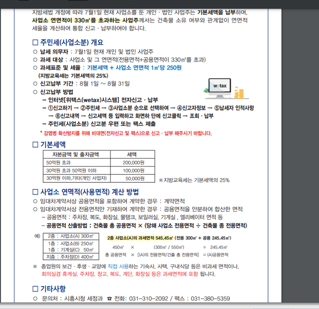 - 취득세·등록세세금·세무Q. 주민세 재산분 신고할때요 면적이궁금합니다. 안내문이 인터넷상에 있는것들인데요.주민세 사업소분 재산분신고할때요 ~!여기서궁금한건 전유부분에나온 임대면적과 공유면저적나온 655.8로 더해서신고하면되나요?다더해서 신고하는게맞는지 궁금합니다. 전유부분은 해당층을 안분해서나온것같은데맞을까요?방제실,비상발전기실 등등 해당항목은명확하게안나와있는데 더해서 신고하는게맞을까요?