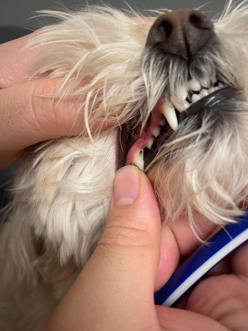 강아지 치석인가요? 충치인가요??치석은 노란색 아닌가요?양치 매일시키는데 ㅠㅠ충치인가요!??!!!!!!!!!!