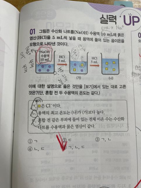 - 화학학문Q. 중화반응 문제 자세하게 알려주세요 !1. (가) 그림 중 네모가 H+가 될 순 없나요?2. 혼합 전 같은 부피에 들어 있는 전체 이온 수라는 게 무슨 말인지 쉽게 설명해주세요 !!