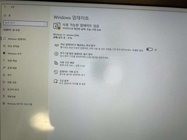 - PC·노트북디지털·가전제품Q. 윈도우10에서 11로 업데이트 하는데 멈췄어요!윈도우10에서 11로 업데이트 하는데 멈췄어요!몇시간이 지나도 계속 61%에서 넘어가질 않아요 ㅠㅠㅠ방법 좀 알려주세요!
