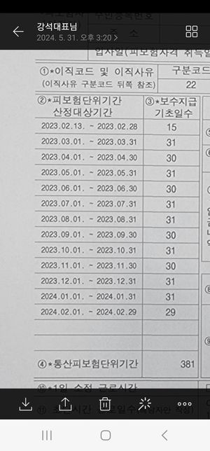 - 임금·급여고용·노동Q. 이직확인서 써주셨는데 날짜 좀 봐주세요주휴수당 받으며 주5일월~금 근무했는데30일 또는 31일이 맞나요?일요일만 빼고 25일이나 26로 표시되야하는거 아닌가요?