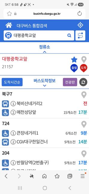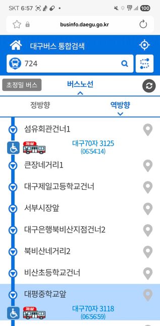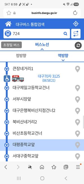 - 생활꿀팁생활Q. 대구 724 버스 뒷차 계속해서 늦게 옴오전 6시 54분에 대평중학교앞 정류장 왔더만타야되는 724 3118 버스 앞차 가 버려서다음 724 3125 버스 뒷차는 바로 안 오고섬유회관건너1~큰장네거리1~대구제일고등학교건너~서부시장앞~대구은행북비산지점건너2 정류장에14분 이상 겁나 오지도록 오래 머물다가14분뒤 07:08분에 724 3125 버스 뒷차늦게 와서 탔으나 빨리 안 가고 거북이처럼매우 느리게 가는데 이거 이유 도대체 뭐죠전광판에도 724 3125 버스 뒷차10분뒤에 온다고 했으나 실제로는14분뒤 07:08분에 왔는데 이거 시간대랑 배차간격 문제인가요전광판하고 대구광역시 버스정보시스템홈페이지에 나온 시간표랑 매우 다른데요724 3125 버스 뒷차 오기까지걸린시간:오전 06:54~07:08(14분 소요)(오전 6시54분부터 섬유회관건너1~큰장네거리1~대구제일고등학교건너~서부시장앞~대구은행북비산지점건너2 정류장에 14분 이상 오래 머물다가 14분후 7시8분에 724 3125 버스 뒷차 도착함)724 3125 버스 뒷차 탑승시간:오전 07:08~07:16(8분 이상 소요됨)이동구간:대평중학교앞➡️공단역1(대평중학교앞 승차➡️공단역1 하차)724 3118 중국산 범한자동차 전기버스 앞차:대평중학교앞 진입724 3125 버스 뒷차:오전 6시54분부터 섬유회관건너1~큰장네거리1~대구제일고등학교건너~서부시장앞~대구은행북비산지점건너2 정류장에 14분 이상 오래 머물다가 7시 8분에 724 3125 버스 뒷차 늦게와서 탔더니 대평중학교앞~공단역1 까지 가는데 거북이처럼 기어가더니 느리게 가서 8분뒤 7시 16분에 공단역1 하차
