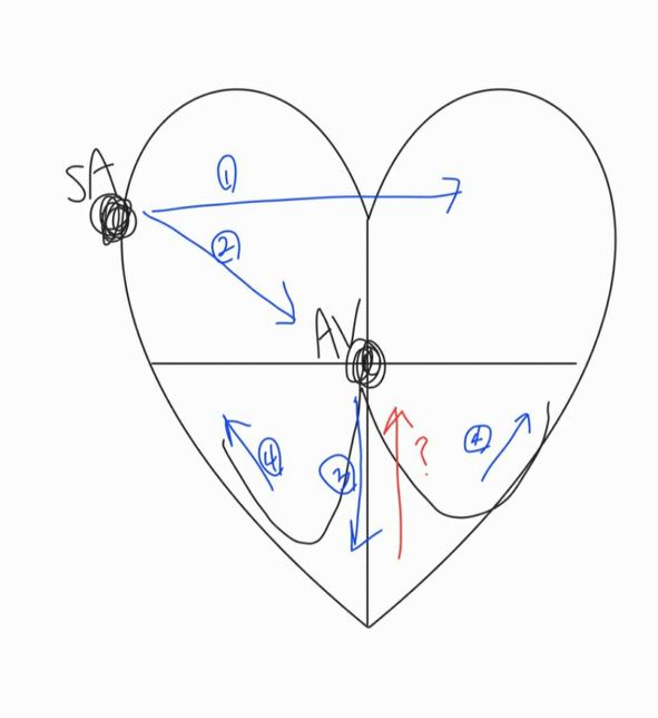 - 생물·생명학문Q. 심전도에서 심실의 재분극 순서에 대한 질문파란색으로 표시한 부분은 심장의 탈분극을, 빨간색은 심장의 재분극을 나타낸 것인데 심전도에서PQRS는 탈분극, T는 심실의 재분극(빨간색으로 표시)이라고 알고 있습니다. 근데 재분극은 탈분극이 되고 나서 바로 일어나는 것 아닌가요? 그럼 12345로 진행됐으니까 재분극도 12345로 돼야 되는데 왜 갑자기 빨간 부분이 재분극이 가장 먼저 돼서 그게 그래프에 T로 표기되는 건가요?
