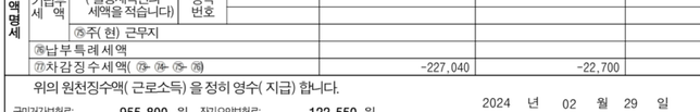 - 연말정산세금·세무Q. 병원이 직장인데 이번에 연말정산 한거 2월달에 최종정산 자료 주는게 맞는거죠?제가 이번달 급여에서 빠지지도 않고 받지도 않았는데 12월19일부터~ 2/24일까지 근무하고 퇴사한 상황입니다. 연말정산 자료 다 제출 했습니다. 제가 입사하면서 근로계약서도 쓰지 않았고, 급여명세서도 받지 않았고, 어제 아직 직장 다니시는 동료한테 여쭤보니 다른 분들은 어제 연말정산에 대한 원천징수영수증을 주셨다고 하더라구요. 저는 어제 주시지도 않았습니다ㅠㅠ 오늘 요청을 해볼려고 하는데 따로 회계나, 경영지원, 세무 팀이 없고 개인병원이라 원장이 세무사 끼고 합니다.원천징수영수증이랑, 최종연말정산자료 달라고 하면 될까요? (원천징수 받으면 이번달 2월 급여명세서는 안 받아도 될까요?) 사회초년생이라 도움을 얻고 싶습니다... 감사합니다.