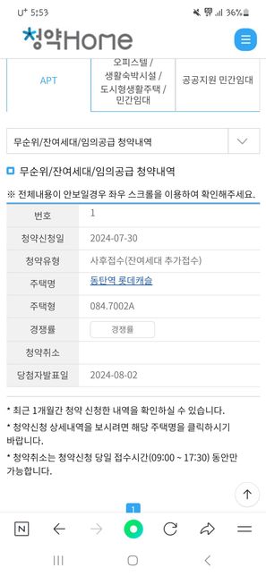 - 부동산경제Q. 동탄 롯데캐슬 청약신청 제대로 한거 맞을가요?잠결에 동탄 롯데캐슬 무순위? 청약 신청 했는데 제대로 한게 맞는지 불안해서요 다른 사람들은 청약취소에 칸 뜨던데 저는 안 뜨거든요 제대로 한거 맞나요?