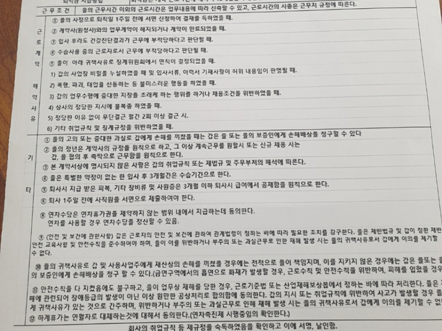 - 근로계약고용·노동Q. 아웃소싱도 재직증명서가 가능할까요???????? 아웃소싱에 입사했는데 하청인데 혹시 재직증명서가 가능할까요???그리고 계약서 사진에 을의 사정으로 퇴직일 1주일전 신청 이것은계약기간을 따로 정했을때 하는말일까요? 계약서쓸때 계약기간을 따러 정하진않았어요