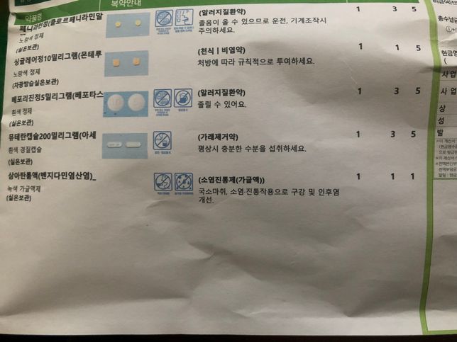 - 약 복용약·영양제Q. 콧물약 복용방법에 관해서 질문드립니다.월요일에 이비인후과 갔을때 코 내시경을 했는데 코 깊숙히 들어가니까 끈적한 콧물이 있다고 축농증이 시작될라 말라 하는 그런 상태라 하셔서 말그대로 항생제를 받아와서 복용하고 어제 이비인후과 가니까 코 내시경 하니 끈적한 콧물이 없다해서 항생제는 안먹어도 된다고 해서 항생제는 처방 안받았고 제가 원래 후비루(콧물이 목 뒤로 넘어가서)약간 있었는데 후비루도 거의 심하지 않다고 하셨고 식사할때나 온도변화에 따라 콧물이 많이 나서(혈관운동성 비염 예상해서) 콧물약을 처방 받아왔는데 페니라민정,베포리진정,싱귤레어정 이거 3개다 콧물약인가요? 페니라민정,베포리진정 둘다 항히스타민제인데 항히스타민제 2개 먹으면 오히려 끈적한 콧물이 생길수도 있어서 안좋은건지? 아니면 항히스타민제 2개 먹어도 끈적한 콧물 안생기고 콧물을 줄여주나요? 정확한 답변좀 부탁드립니다..
