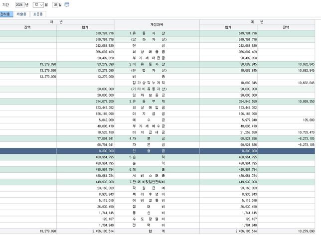 - 종합소득세세금·세무Q. 개인사업자 종합소득세 자본금 마이너스종합소득세 개인사업자 결산 중 입니다.자본금이 이렇게 마이너스 날 경우어떤 분개가 필요한가요?대출이 있어서 마이너스로 냅두면 안될 것 같아서요
