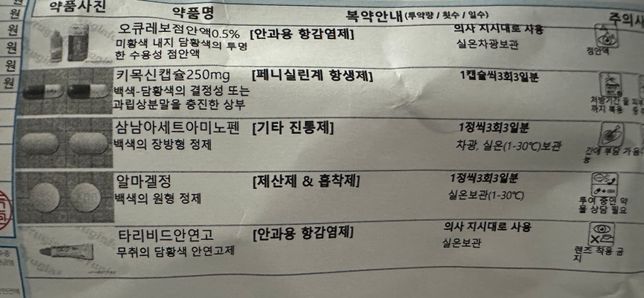 - 약 복용약·영양제Q. 이 약들 같이 복용해도 괜찮은건가요?다래끼 째고 와서 받은 약이랑 뒷목이 아파서 치료하고 받아온 약입니다. 혹시 같이 복용하면 안된다거나 주의할 부분이 있을까요??