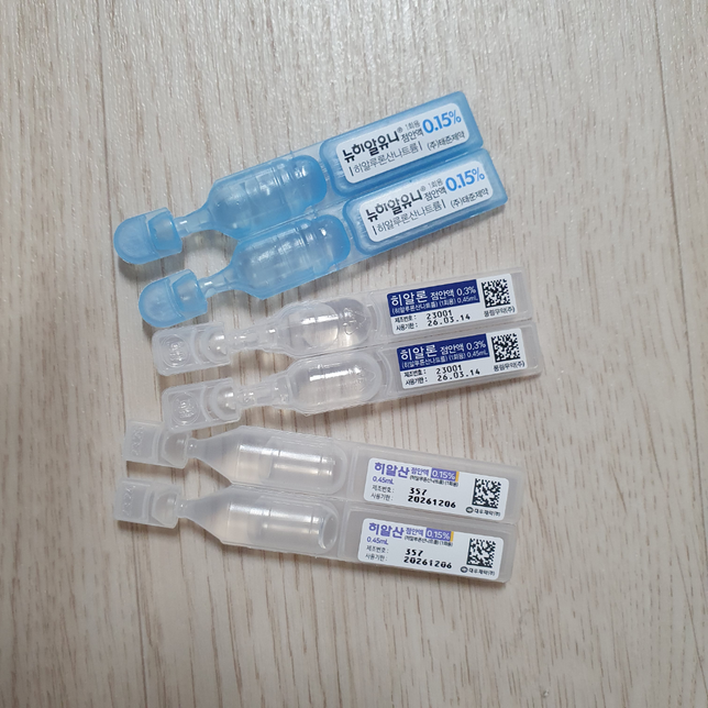 - 약 복용약·영양제Q. 이 세가지 인공눈물 모두 렌즈 착용하고 넣어도 되는건가요?포장박스를 잃어버려서 렌즈 낀 상태에서 써도 되는지 모르겠어요.검색해보니 일회용 인공눈물엔 방부제가 없으니 써도 된다는 의견이 있고, 방부제 없는 인공눈물은 꼭 처방을 받아야만 살 수 있다는 의견이 있더라고요.. 사진에 있는 것들은 처방받은것도 있고 급해서 그냥 산것도 있거든요.사진속 인공눈물은 렌즈 끼고 넣어도 되나요?