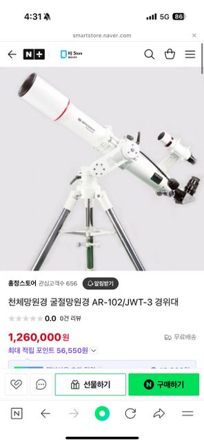 - 지구과학·천문우주학문Q. 별지기님들 제가 천체망원경을 사려고하는데 도와주세요.제가 옛날부터 천체에 관심이 많은데 이번에 돈을 모아둬서 천체망원경을 사려고합니다. 가격은 130만원정도 있는데 이걸로 어떤 망원경이 가성비랑 성능이 좋은지 알려주세요.그리고 제가 봐둔게 있는데 이게 괜찮을까요?